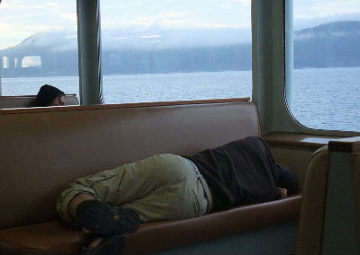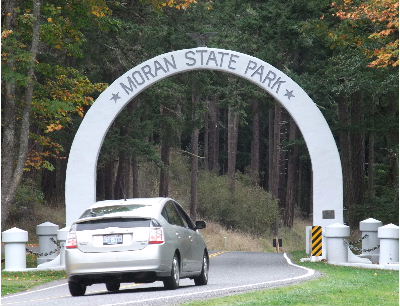 From Burlington, we drove down to the ferry dock at Anacortes, took the ferry to Orcas Island, had lunch at Mia's Cafe (very crowded, very slow), visited Moran State Park, took the ferry back to Anacortes, and drove down to Everett to spend the night. Map.