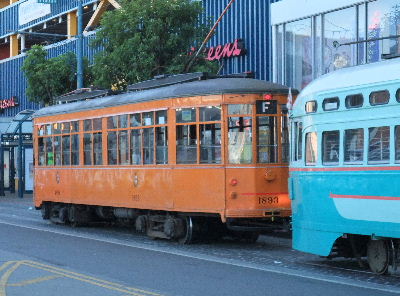 Wednesday morning we took the concierge-recommended "F-Line" down to the Ferry Building (Map) where our tour was to start. The "F-Line" runs only along Fisherman's Wharf and its vehicles are "antique" rail cars from all over the world. Cable cars are not the only public transportation in SF.