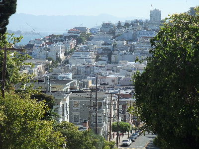 We took off on the air leg of our trip from CMH in midday on Sept. 21st and landed in early evening at SFO after a pleasant flight connecting at DFW. Map. We had arranged for transportation to San Francisco since we decided to forego a car during our stay there. We easily found the SuperShuttle attendant and stop and had an uneventful ride to our Holiday Inn on Fisherman's Wharf. Map. It happened that our driver was from Russia (quite noticeable accent) and after he unloaded our baggage Don ventured one of his few words of Russian. He was duly complemented by the driver on his pronounciation but the tip was already in hand.